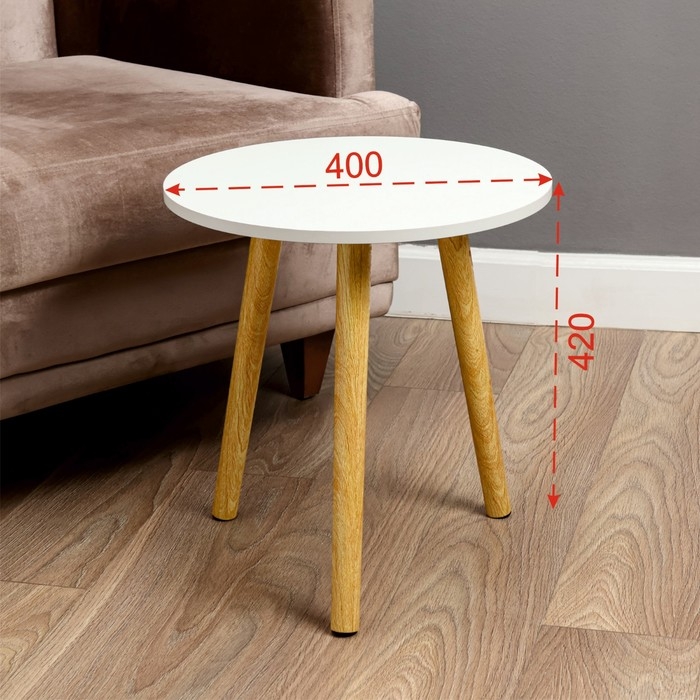 Столик журнальный, D = 40 см, высота 42 см, дерево, белый