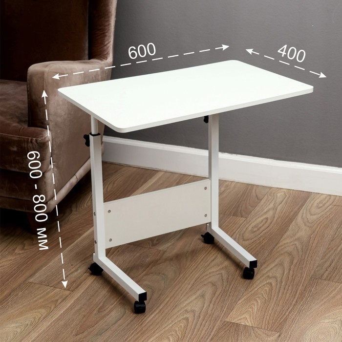 Столик прикроватный, 60х40, регулируемая высота (60-80см), белый