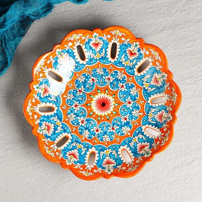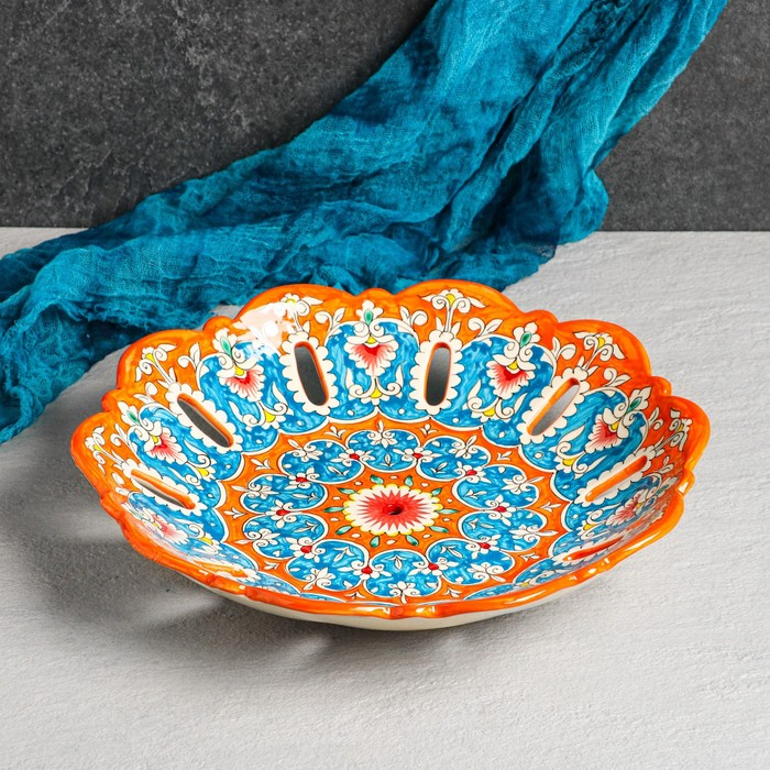 Фруктовница Риштанская Керамика "Цветы", 33 см,