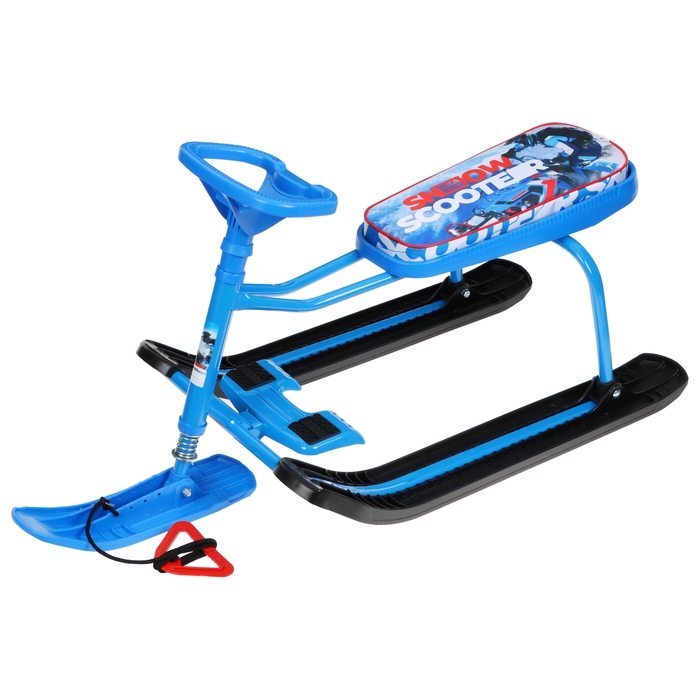 Снегокат предназначен для перевозки детей по плотному снегу или льду, а также для катания с горок. Имеет сварную конструкцию из стальных труб, пластиковых элементов и мягкое сиденье. Оснащён буксировочным тросом. Усиленный тормоз эффективен на обледенелой поверхности и высокой скорости. В комплект входит набор наклеек на снегокат.