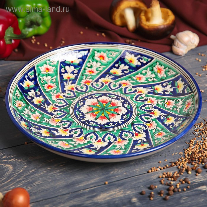 Ляган Риштанская Керамика "Узоры", 28 см, синий
