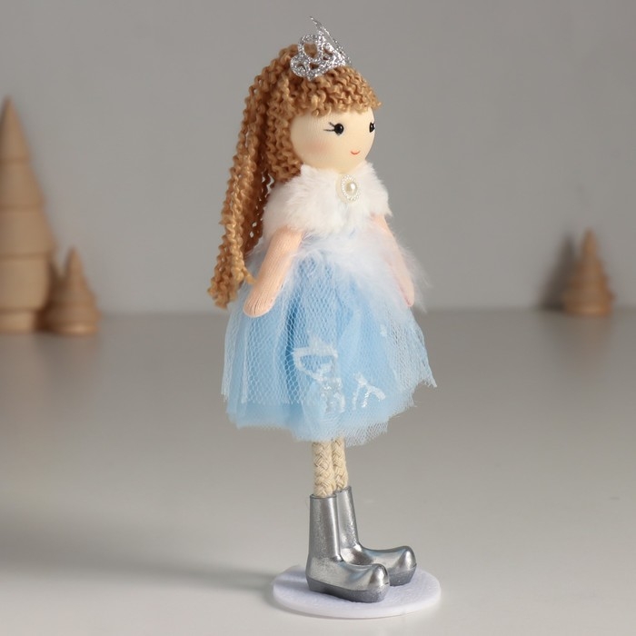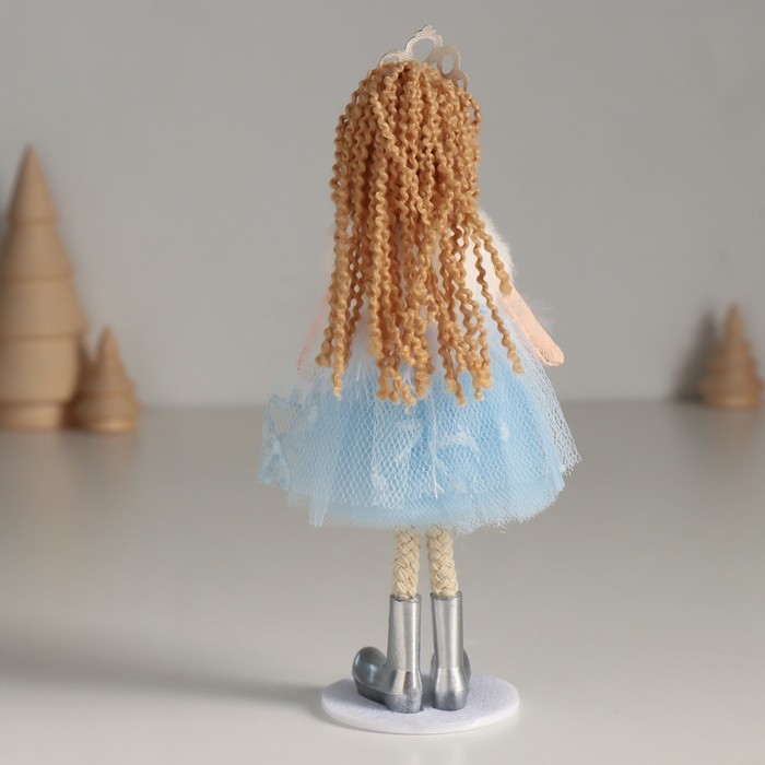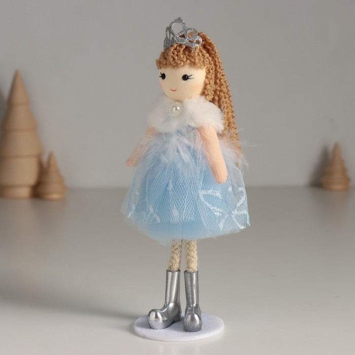 Кукла интерьерная "Принцесса в синем платье с белым воротничком" 5,5х6,5х18 см