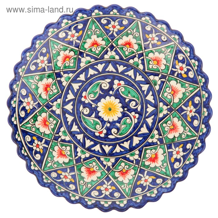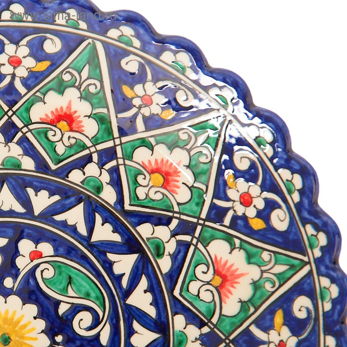 Тарелка Риштанская Керамика "Цветы", синяя, рельефная, 25 см