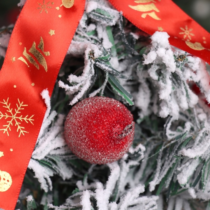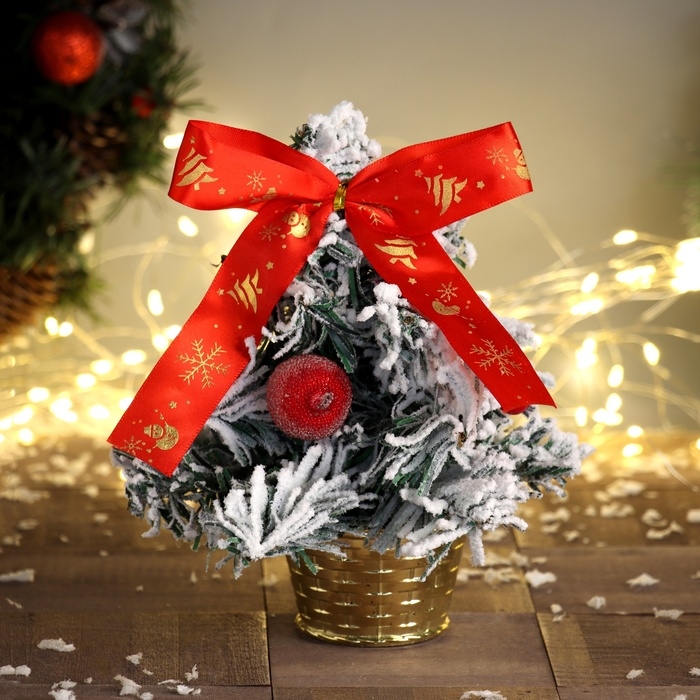 Ёлка декор "Фестивальная, в горшочке" бантик яблоки, 22 см