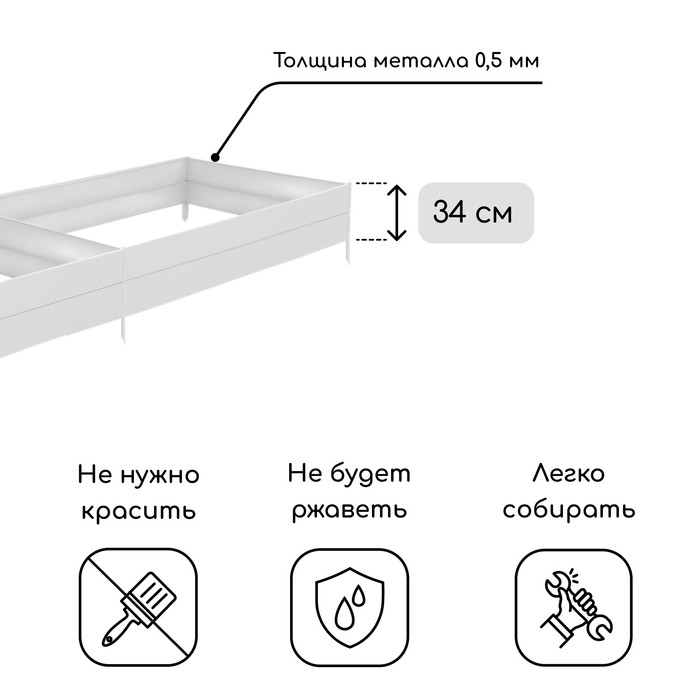 Грядка оцинкованная, 390 × 100 × 34 см, Greengo