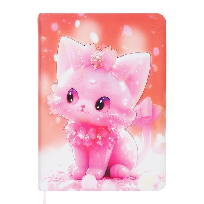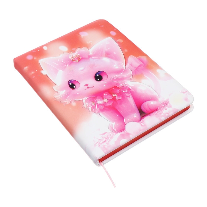 Записная книжка подарочная 96л,линия, цветной срез,обложка ПВХ 3D Кошка (17,7х12,4см)