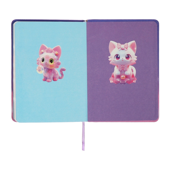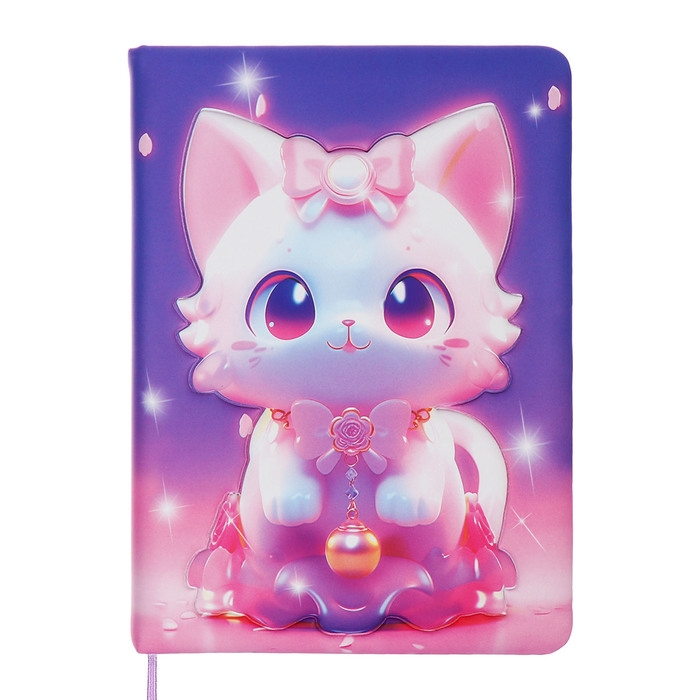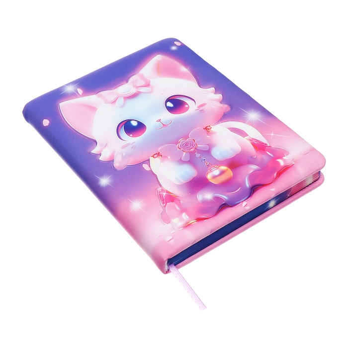 Записная книжка подарочная 96л,линия, цветной срез,обложка ПВХ 3D Кошка (17,7х12,4см)