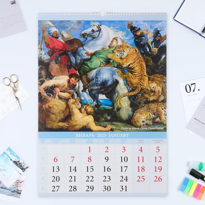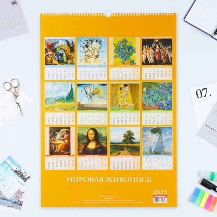 Календарь перекидной на ригеле А2 "Шедевры Мировой живописи" 2025, 42 х 60 см