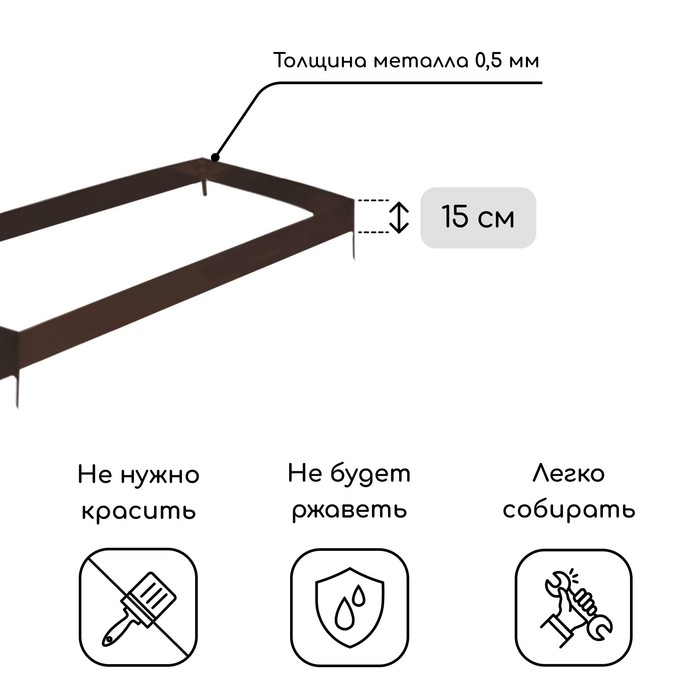 Грядка оцинкованная, 390 × 100 × 15 см, коричневая, Greengo