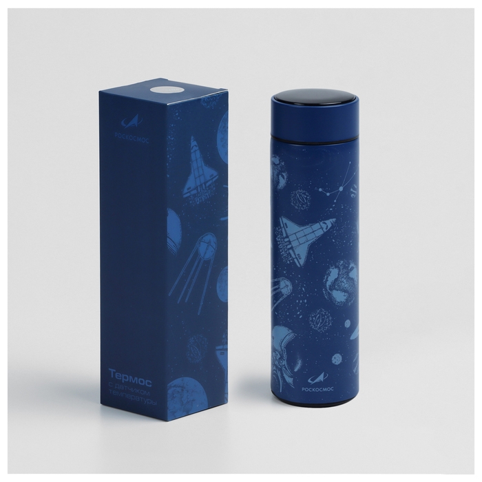 Термос с термометром РОСКОСМОС х ONLYTOP, 500 мл, цвет синий