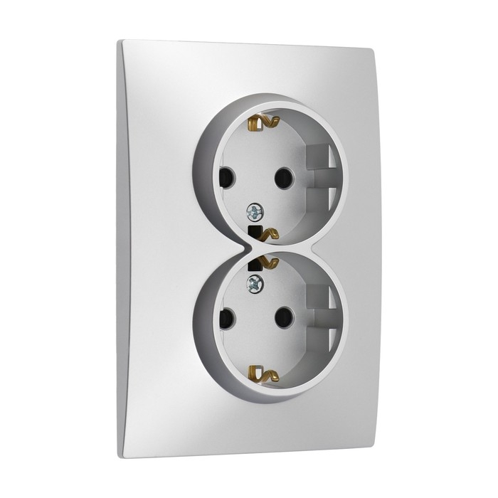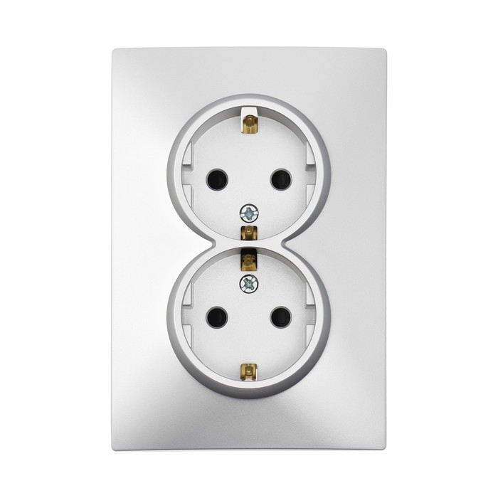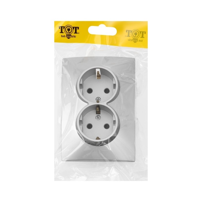 Розетка двухместная TOT Elegant, 16 А, скрытая, с з/к, серебристая