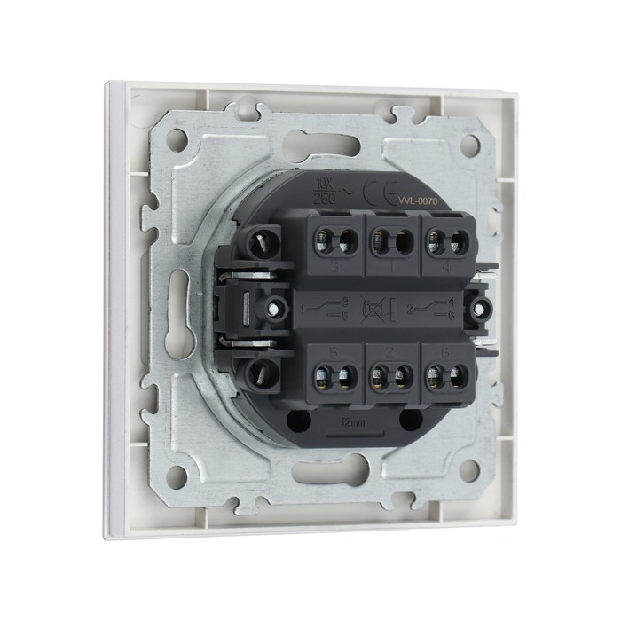 Выключатель проходной TOT Matte Glass, 10 А, 2 кл., скрытый, стекло, серебристый