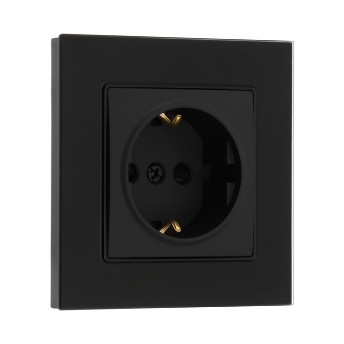 Розетка одноместная TOT Matte Glass, 16 А, скрытая, с з/к, стекло, черная