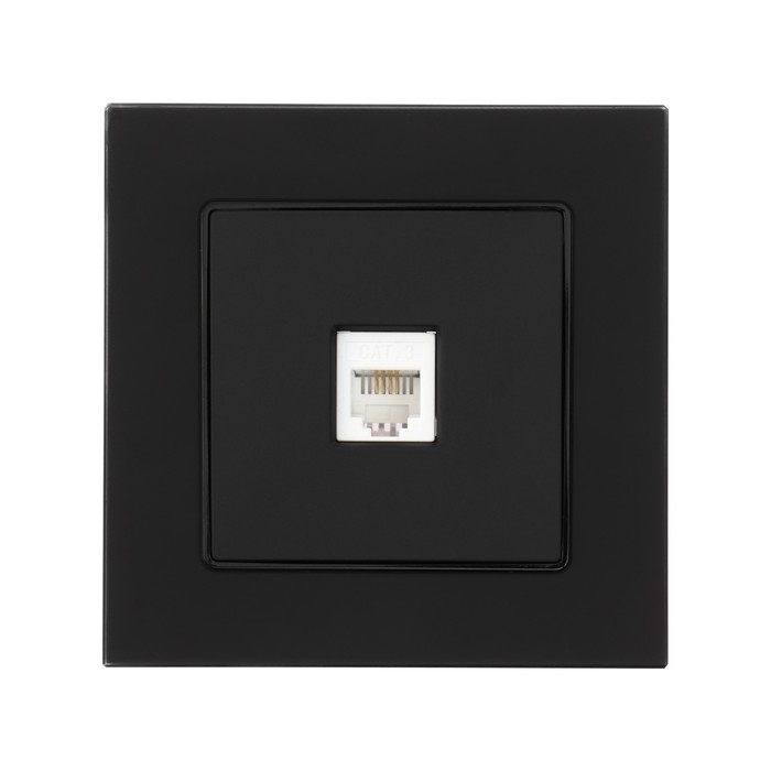 Розетка телефонная одноместная TOT Matte Glass, скрытая, стекло, черная