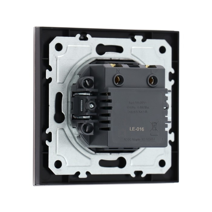 Розетка с USB-A + USB-C разъёмами, 2.1 A, 5В, TOT Matte Glass, скрытая, стекло, черная