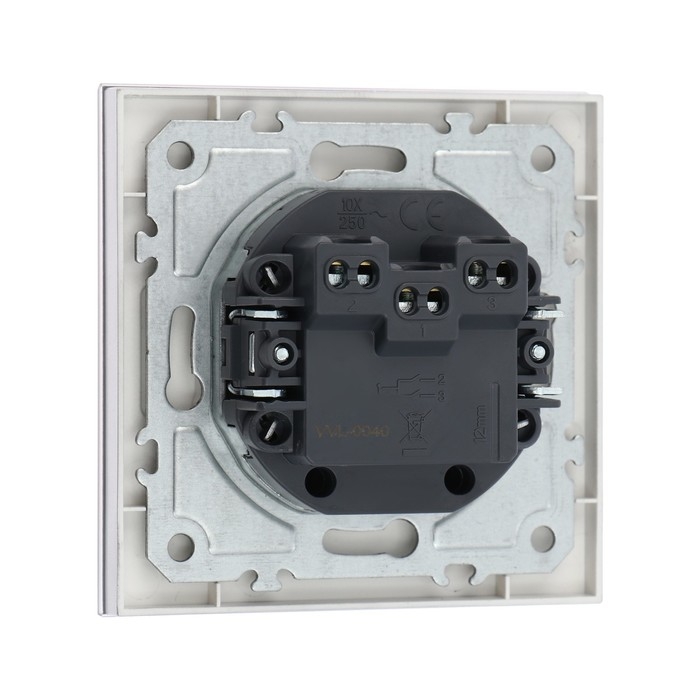 Выключатель TOT Glossy Glass, 10 А, 2 клавиши, скрытый, стекло, серебристый