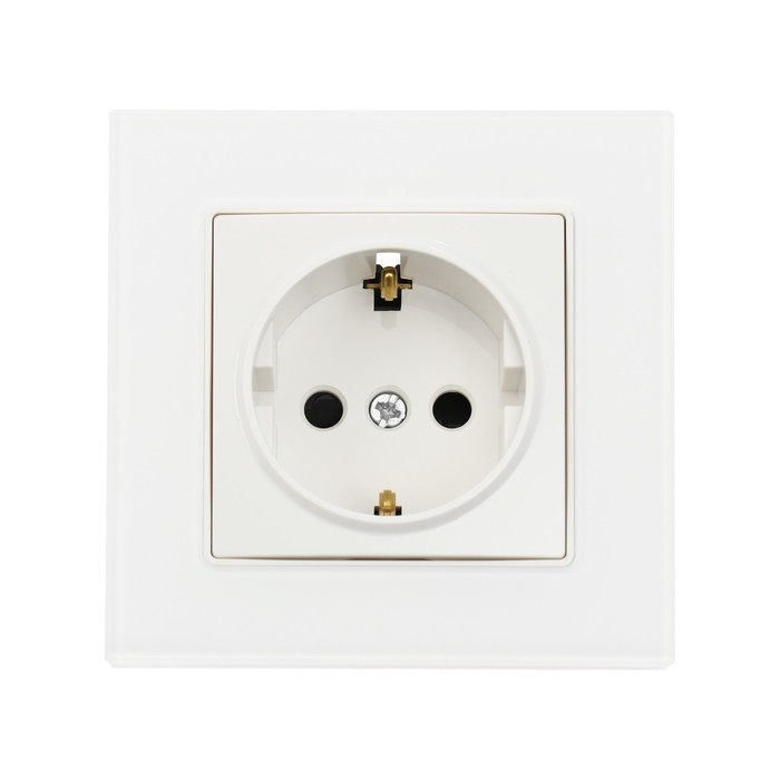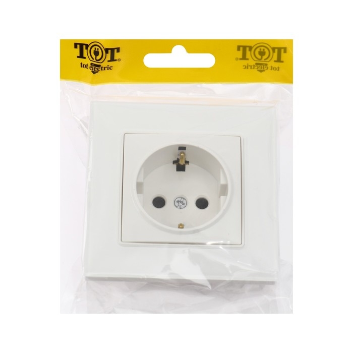 Розетка одноместная TOT Glossy Glass, 16 А, скрытая, с з/к, стекло, белая