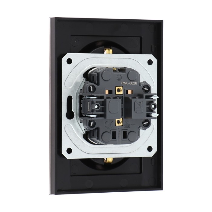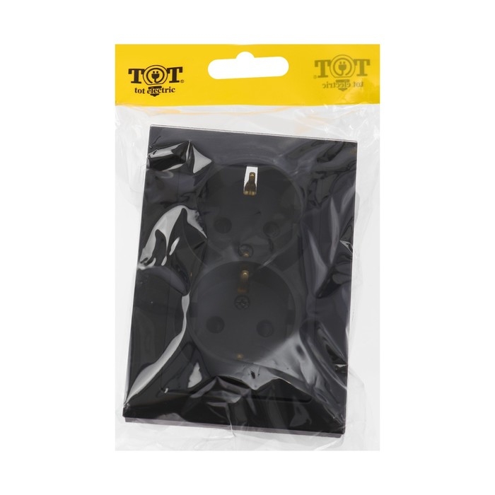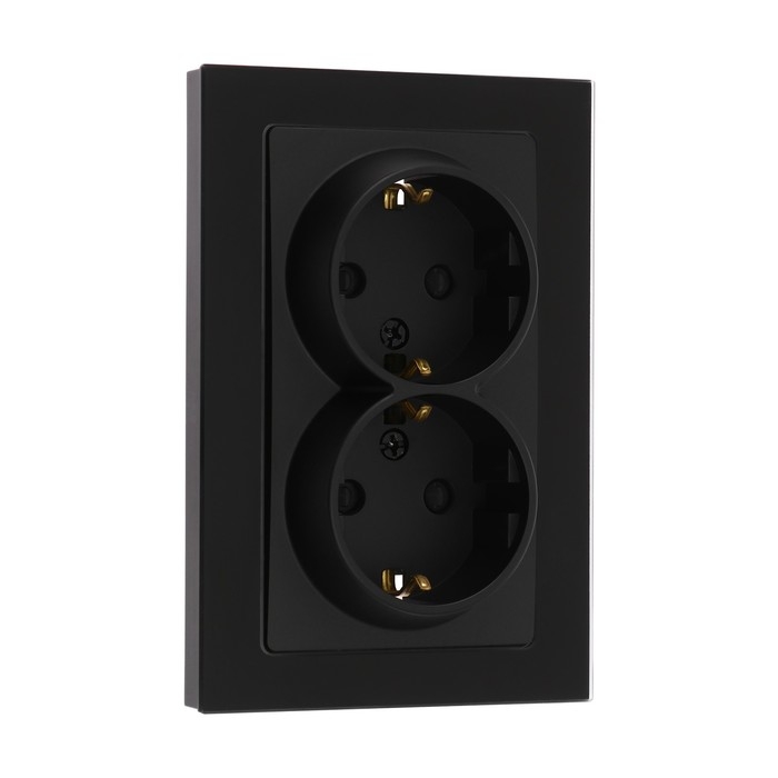 Розетка двухместная TOT Glossy Glass, 16 А, скрытая, с з/к, стекло, черная