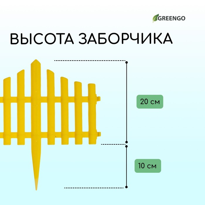 Ограждение декоративное, 30 × 300 см, 5 секций, пластик, жёлтое, Greengo
