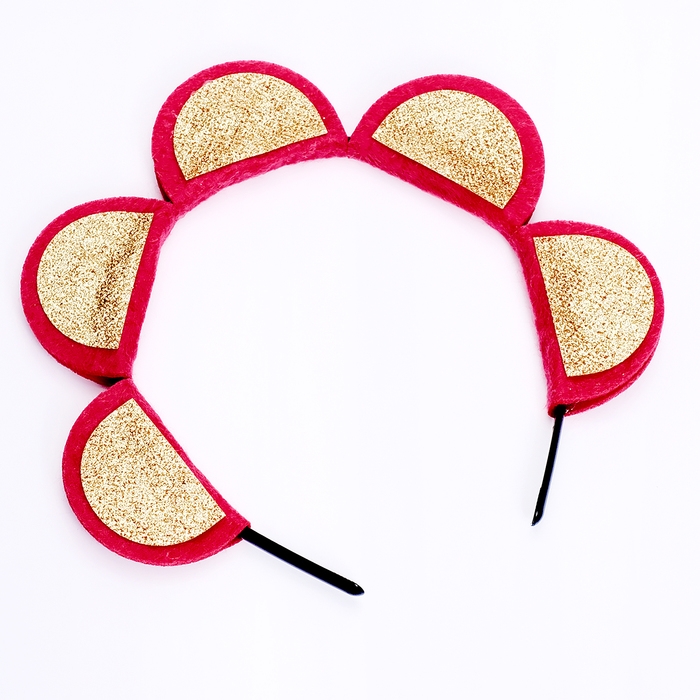 - Ободок украшен розовыми лепестками из фетра с золотистыми элементами. Ободок мягкий и комфортный, надежно фиксируется на голове.