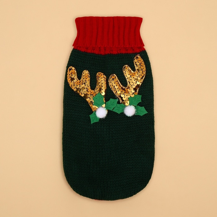 Свитер "Рога удачи", размер S (ДС 25 см, ОШ 23, ОГ 26-45), зелёный