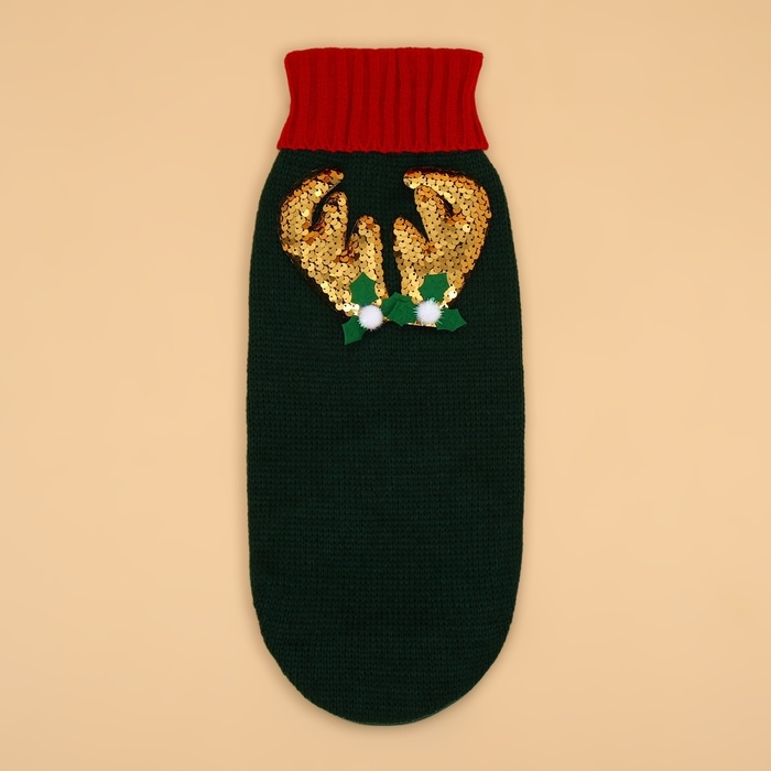 Свитер "Рога удачи", размер XL (ДС 40 см, ОШ 34, ОГ 32-51), зелёный