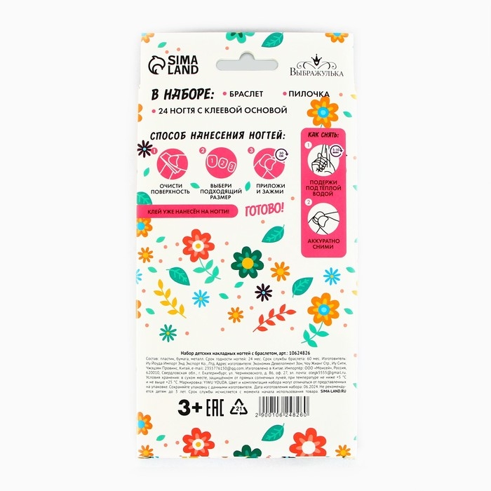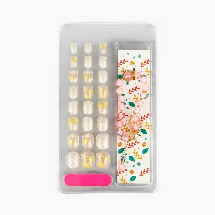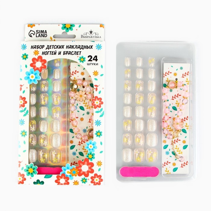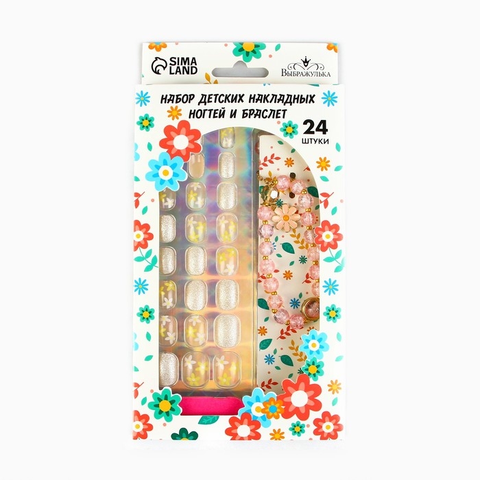 Детские накладные ногти «Весенний букет», 24 шт, набор с браслетом