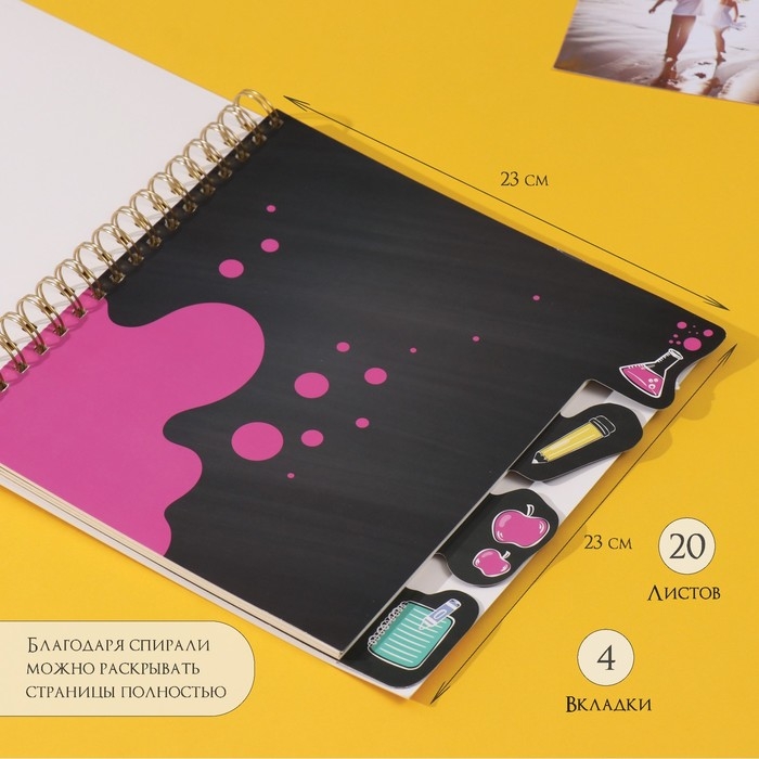 Фотоальбом на спирали 20 листов "Снова в школу" объёмный элемент + 4 вкладки 24х24 см
