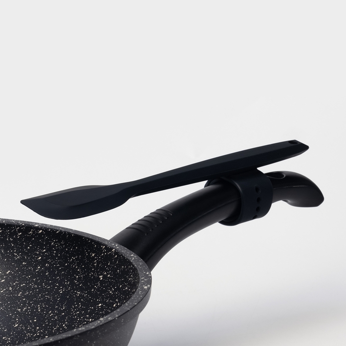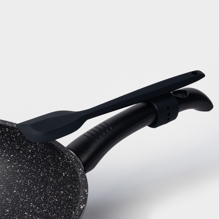 - Отличается своей гибкостью, что позволяет легко доставать еду из углов и узких мест, а также не царапает поверхность посуды с антипригарным покрытием.