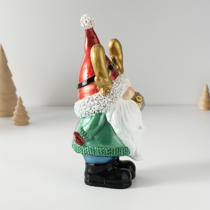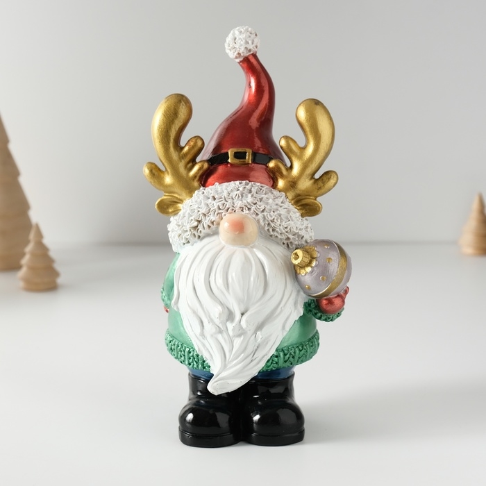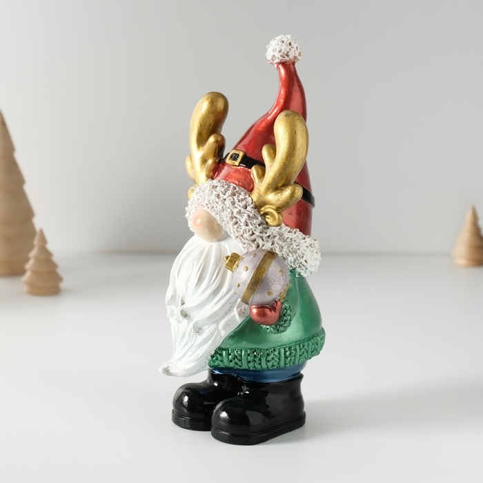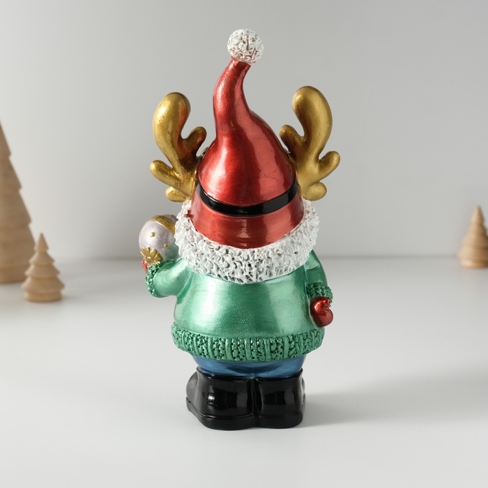 Сувенир полистоун "Дед Мороз в колпаке с рожками, с ёлочным шариком" 11х9,5х21 см
