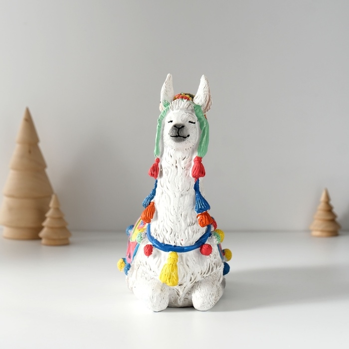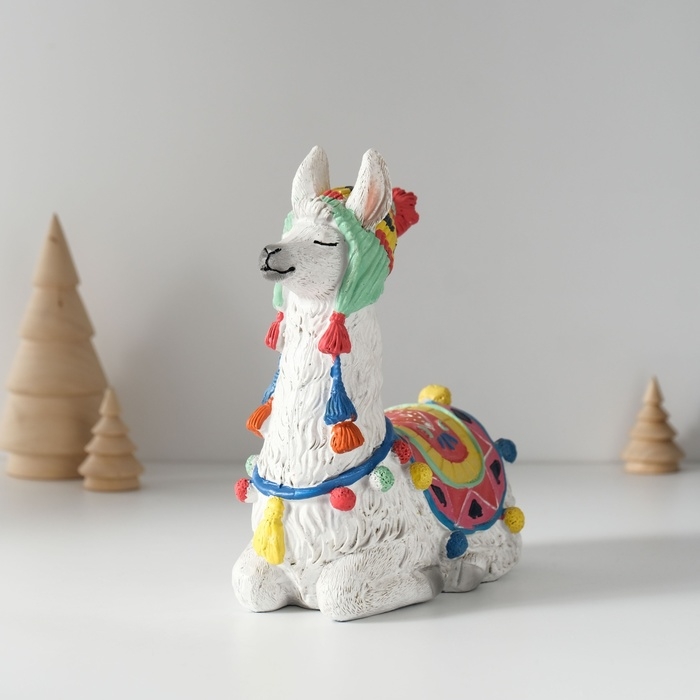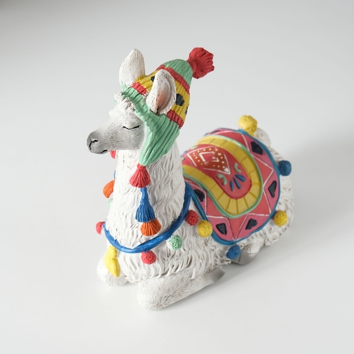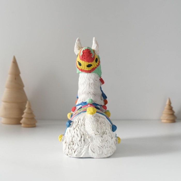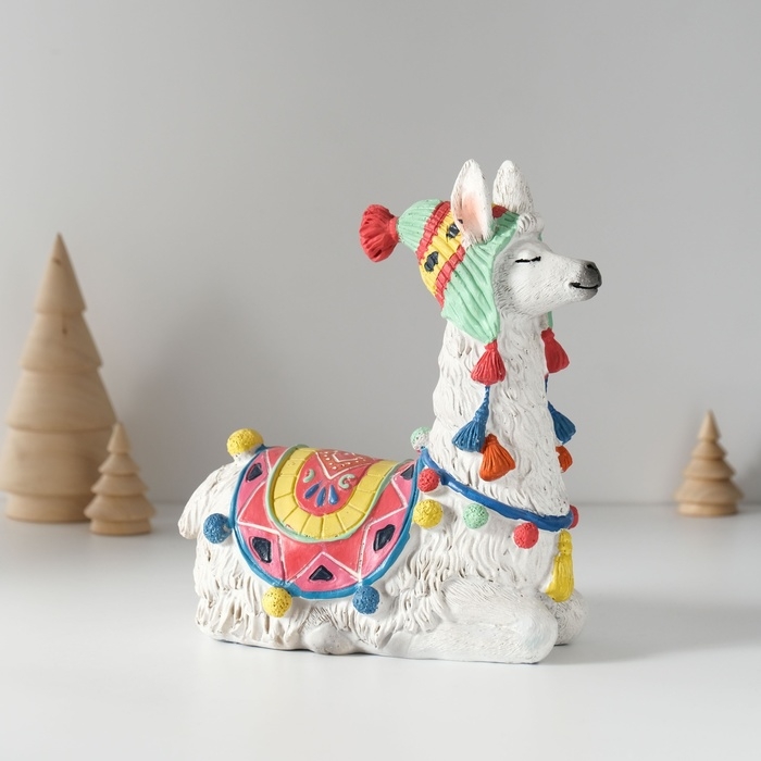 Сувенир полистоун "Лама в цветной попоне и шапке с помпонами" 15х8,5х16,5 см