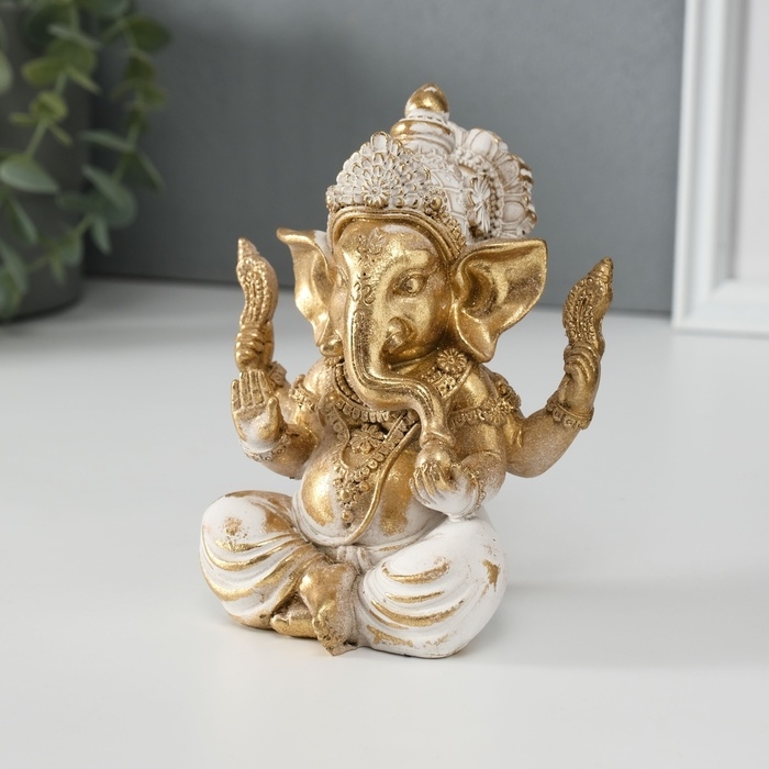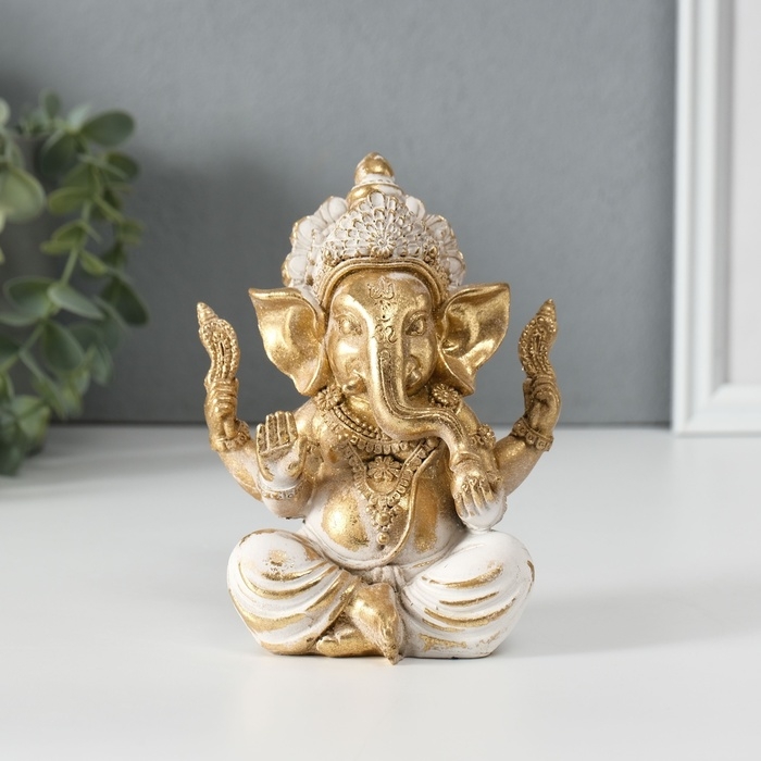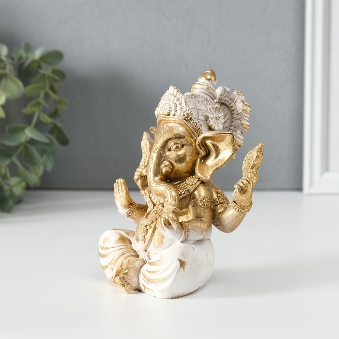 Сувенир полистоун "Ганеша" золотистый 10х9х13 см