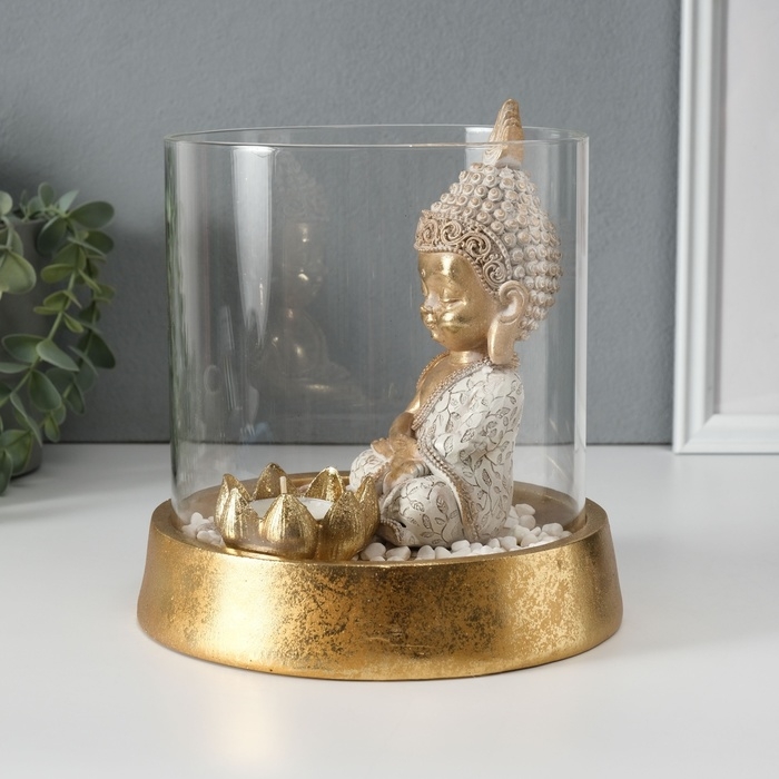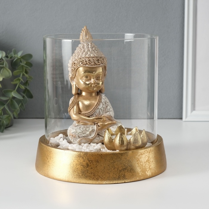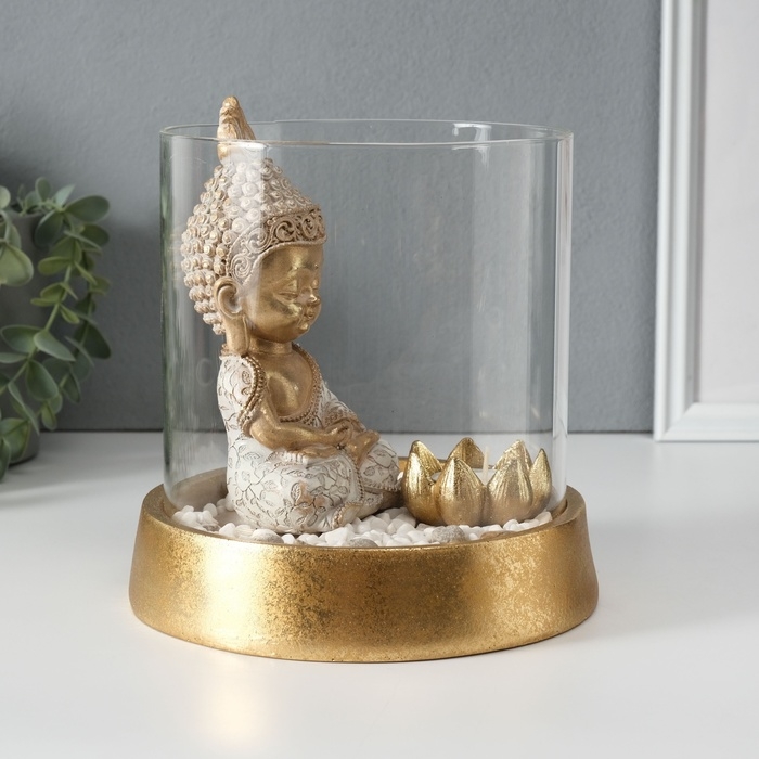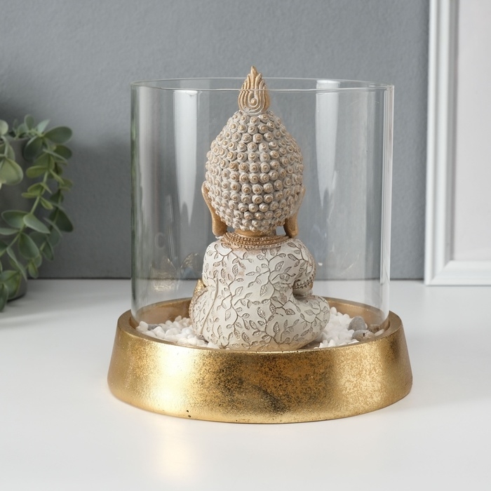 Сувенир полистоун, стекло "Медитирующий Будда в саду камней" со свечой 18х18х18 см