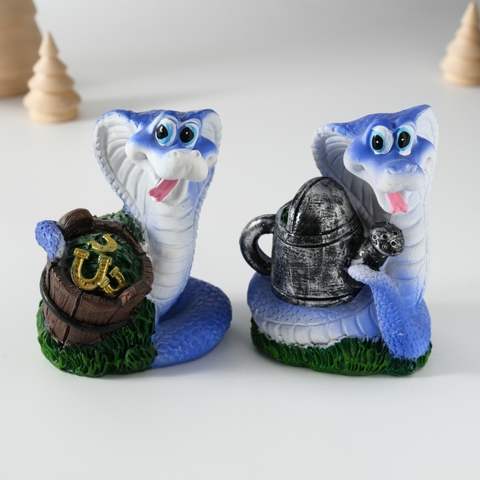 Копилка полистоун "Змейка с кадкой/лейкой" МИКС 7х6х10 см
