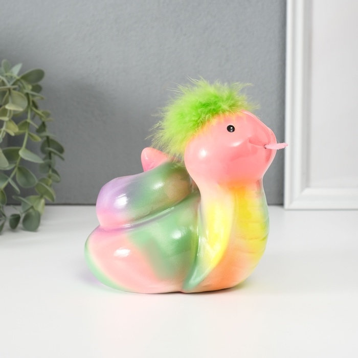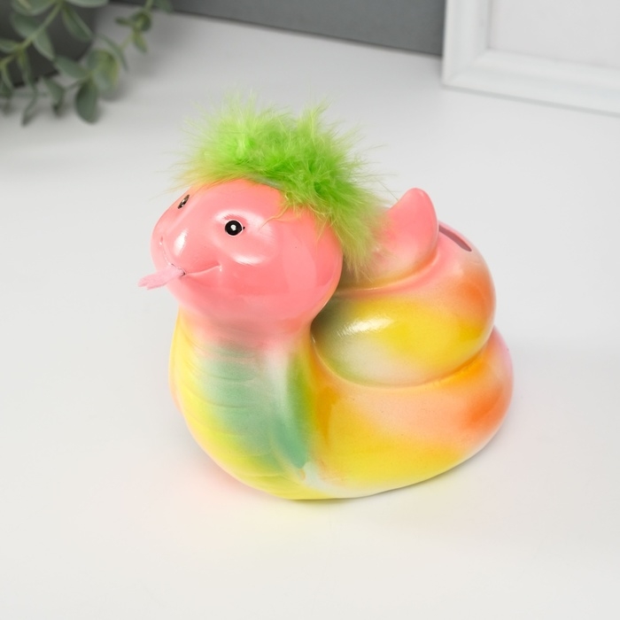 Копилка керамика "Цветная змейка с пушистой причёской" 10,5х13,9х12,3 см