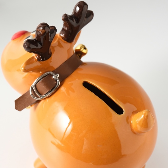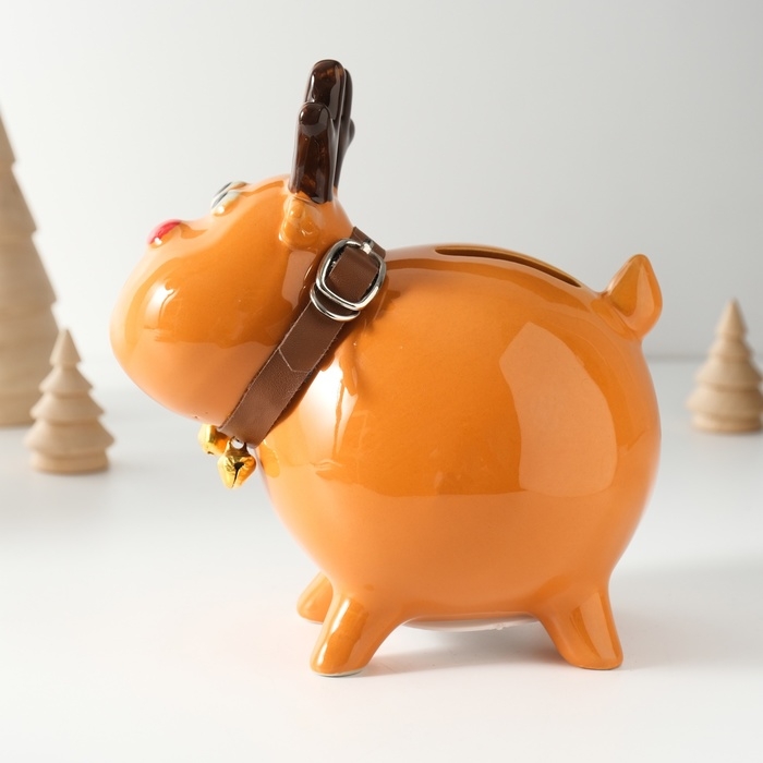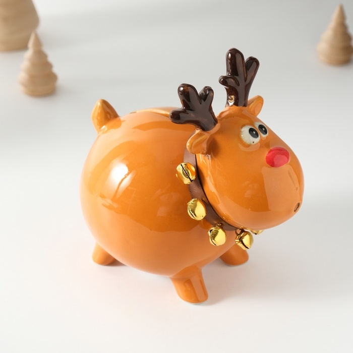 Копилка керамика "Поющий олень, в ошейнике с колокольчиками" 9,8х14х15,1 см