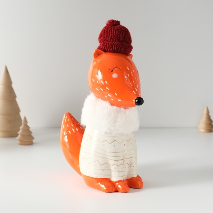 Копилка керамика "Лисёнок в сером свитере и шапке" 7,8х15,7х25 см