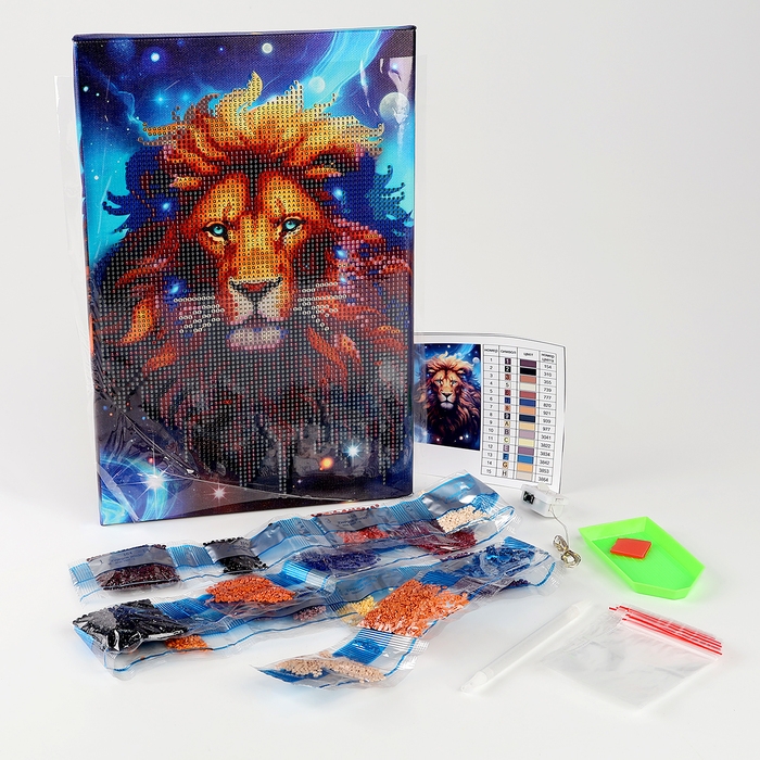Алмазная мозаика с частичным заполнением на подрамнике «Лев», 20 х 30 см, с гирляндой