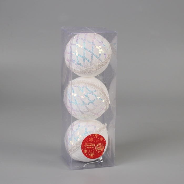 Набор шаров пластик d-8 см, 3 шт "Нежность" белый