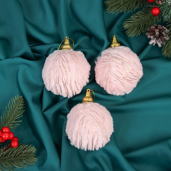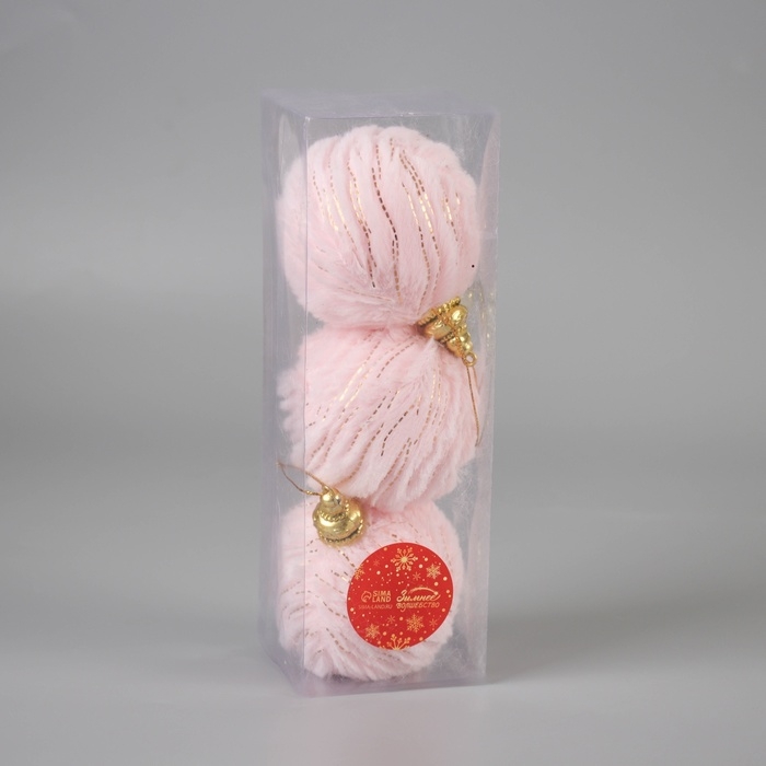 Набор шаров пластик d-8 см, 3 шт "Нежность" полосы, розовый