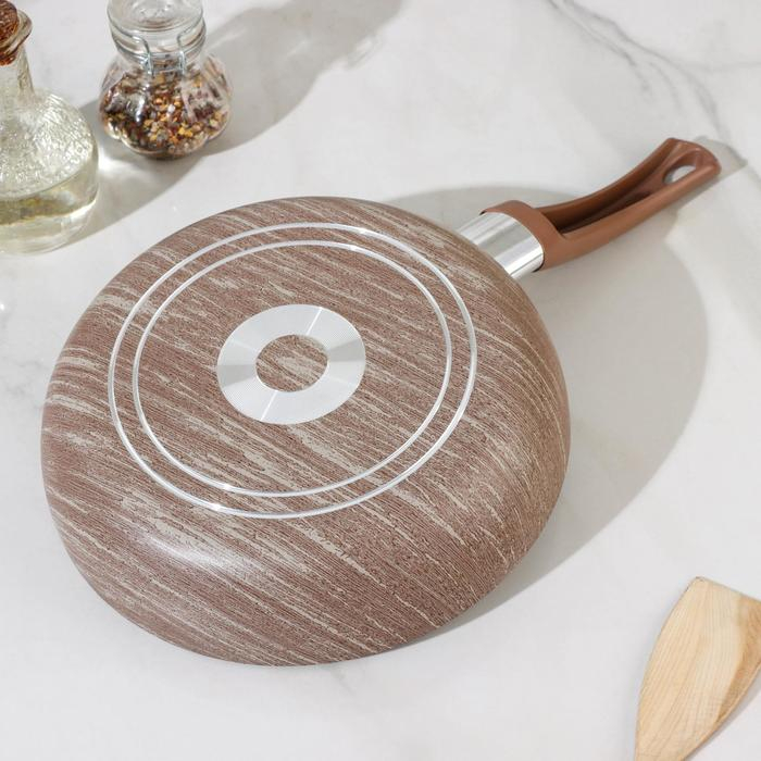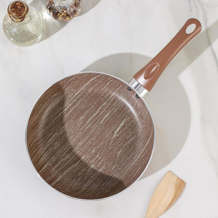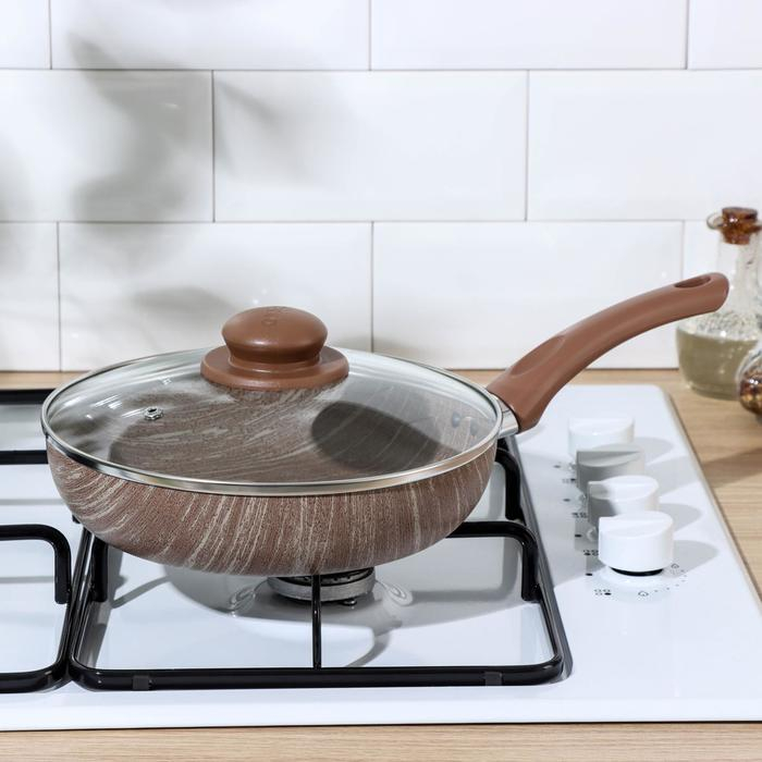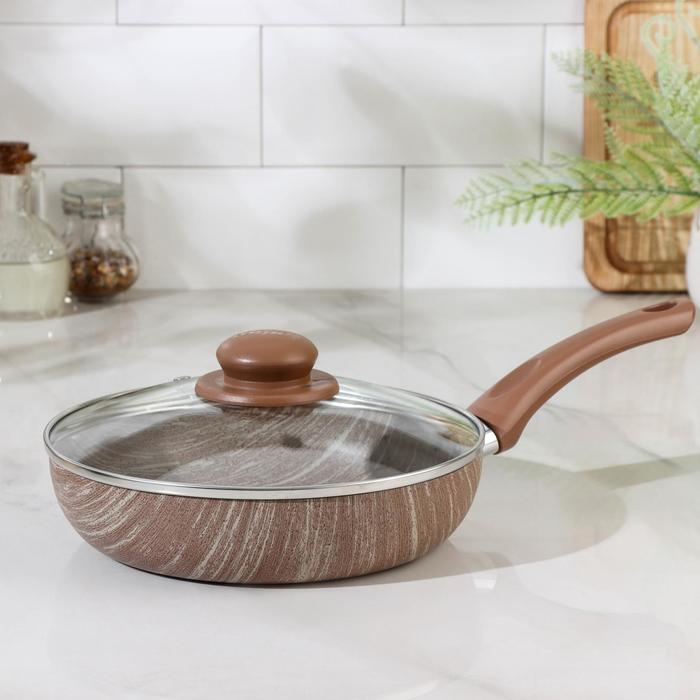 Сковорода глубокая Kantry, d=22 см, стеклянная крышка, пластиковая ручка, антипригарное покрытие, цвет коричневый