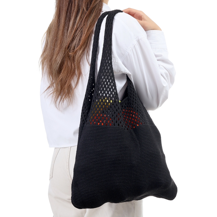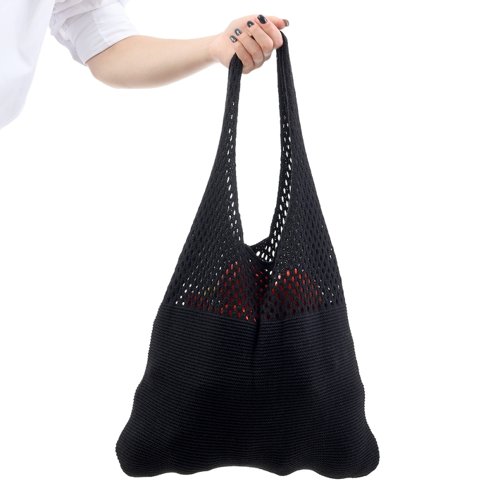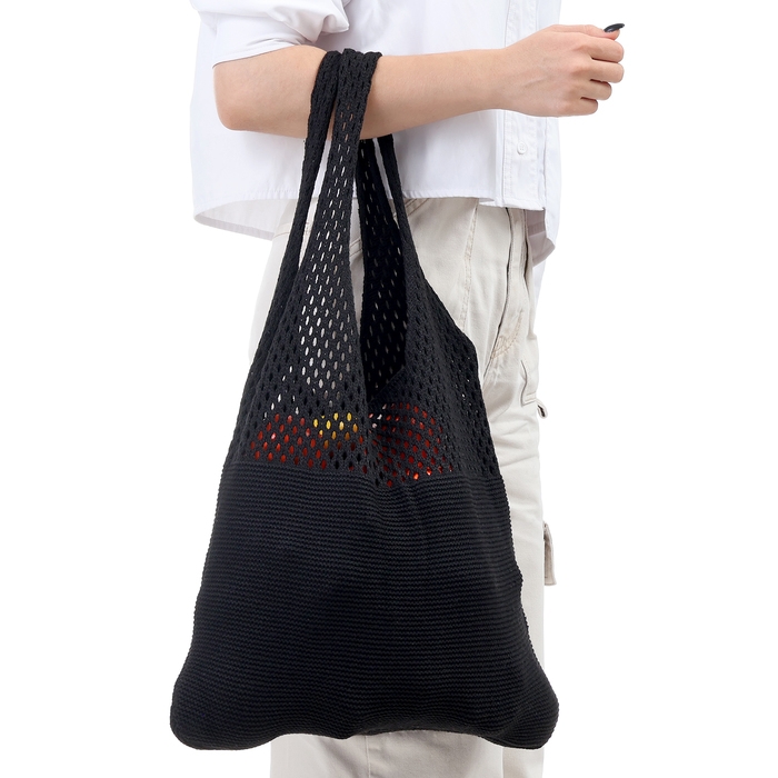 Авоська плетёная сумка сетка 34 х 34 см, ручка 12 см, клетка 1.5 см, чёрная
