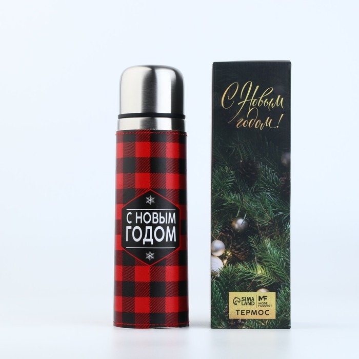 - Стильный дизайн: термос оформлен в современном стиле с новогодним настроением.