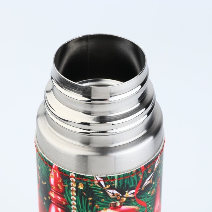 - Стильный дизайн: термос оформлен в современном стиле с новогодним настроением.