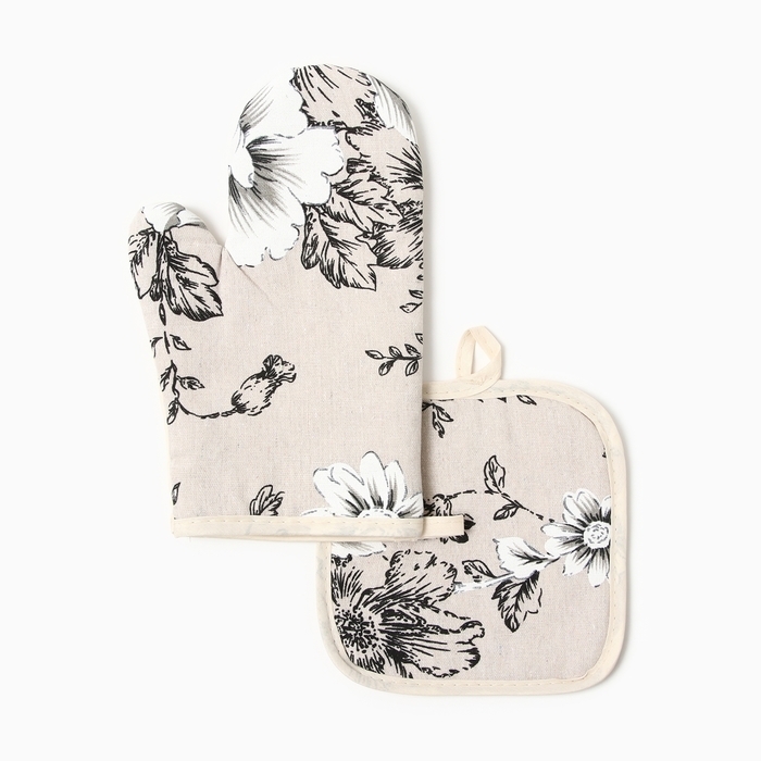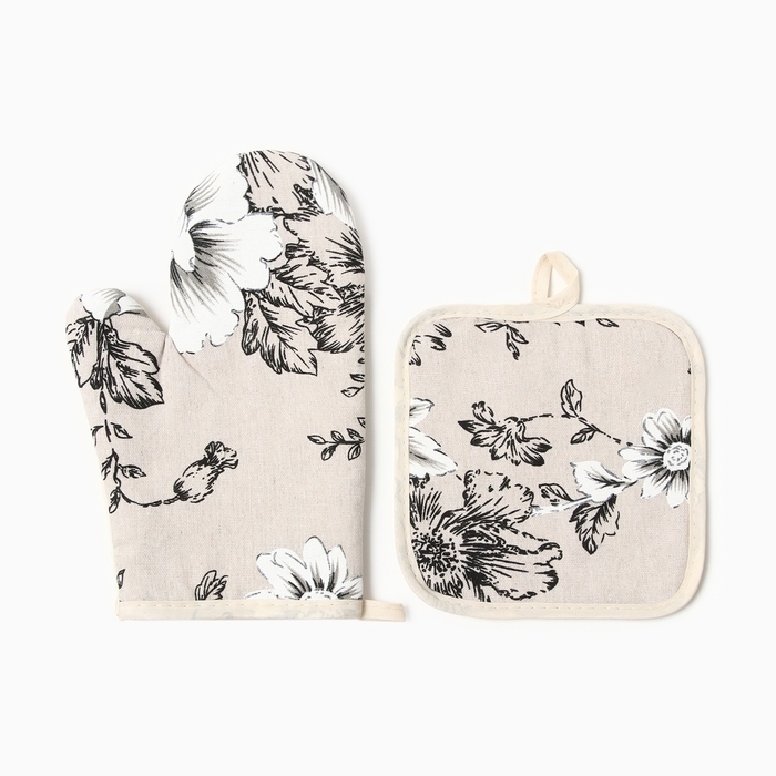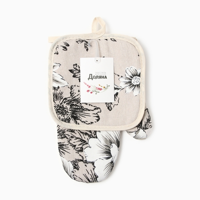 Кух.набор 2 пр. Доляна "Цветы" прих.17*17см, варежка-прихв. 26*16см,100%хл