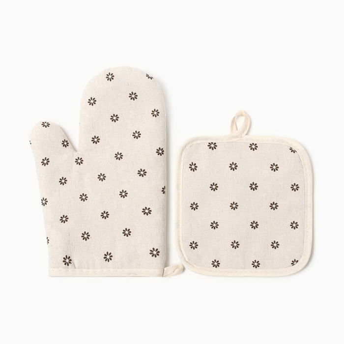 Кух.набор 2 пр. Доляна "Цветочки" прих.17*17см, варежка-прихв. 26*16см,100%хл