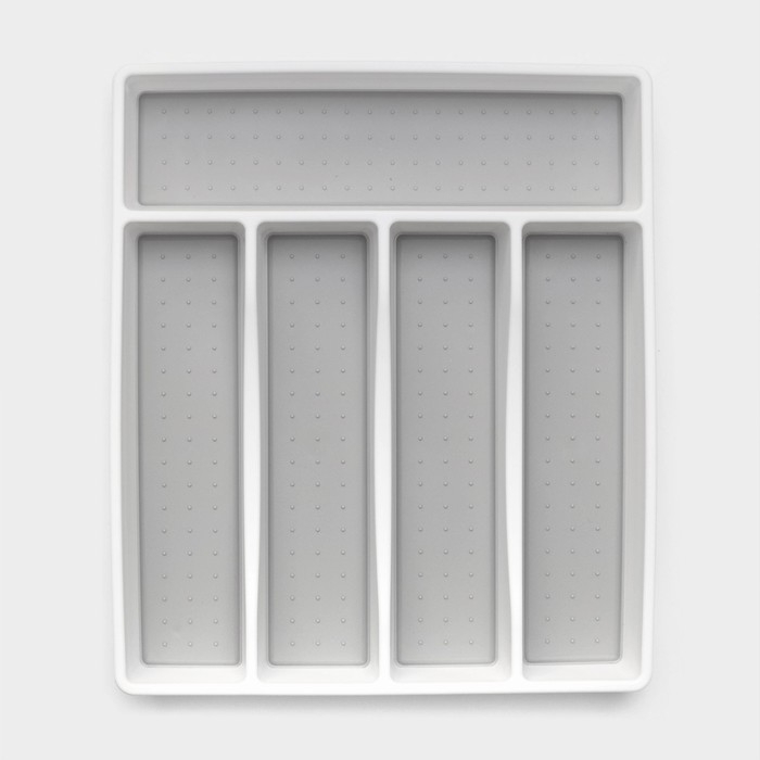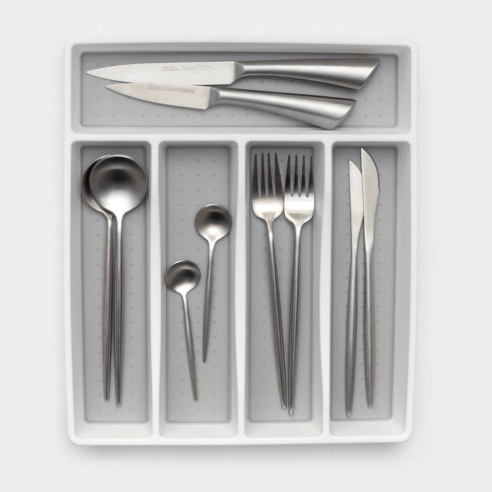 Лоток для столовых приборов Griten, с силиконовой вставкой, 5 отделений, 33,5×29,3×4,5 см, цвет белый