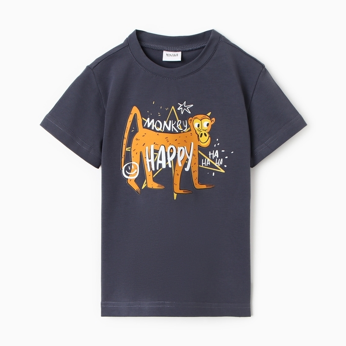 Футболка детская MINAKU: Exclusive print, цвет графитовый, рост 104 см