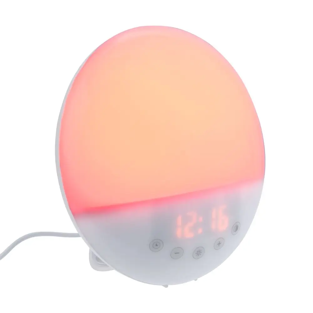 За 30 минут до звонка будильника активируется подсветка и ее яркость постепенно увеличивается — свет медленно выводит организм из фазы глубокого сна и вы будто встаете «с первыми лучами солнца». Эффект мягкого пробуждения можно дополнить натуральными звуками природы.