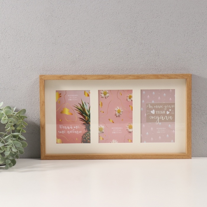Фоторамка МДФ на 3 фото 10х15 см с паспарту "Клио" цвет натуральное дерево 3х38,7х22 см